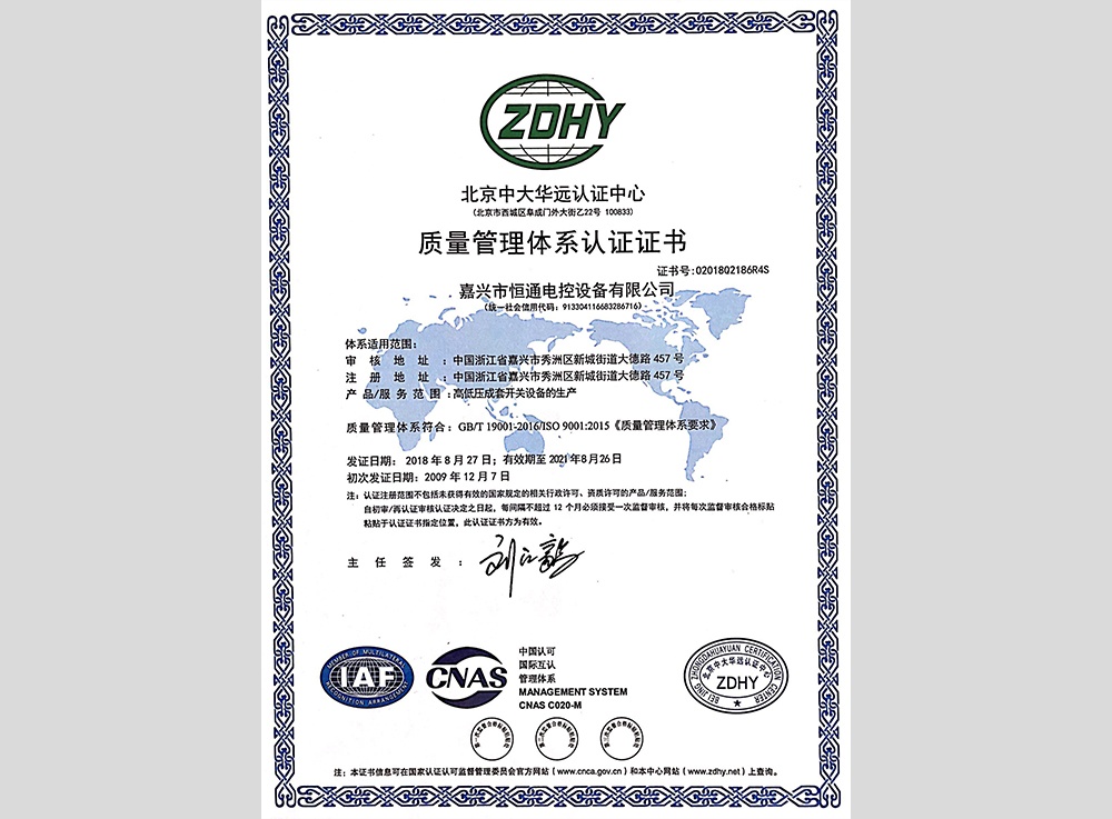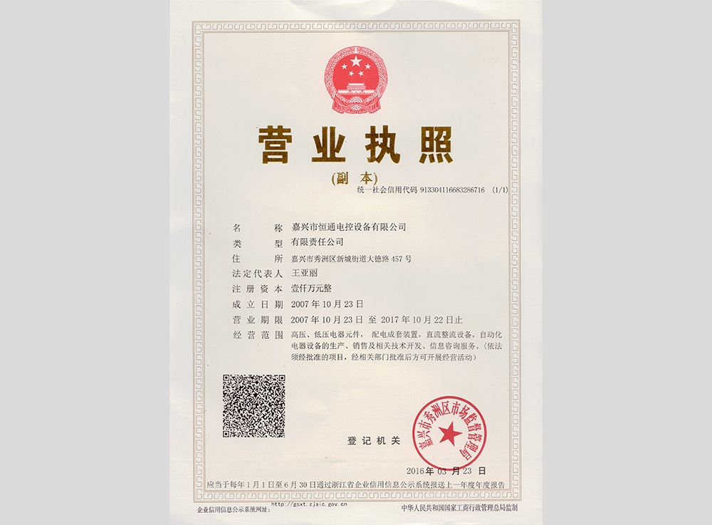設立嘉興市恒通電控設備有限公司,生產(chǎn)經(jīng)營高低壓成套配電設備。